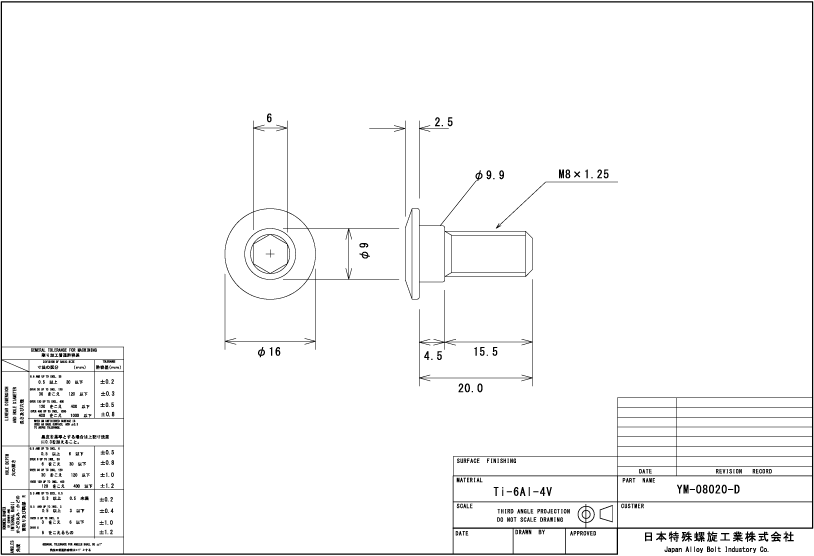 ベータチタニウムでは国内4メーカー、DUCATI、Buell、Triumph等様々なオートバイのローターボルトをTi-6Al-4Vで製造してきました。その中で解った事で驚いたのがメーカーのほとんどが形や素材を変えていないと言う事です。